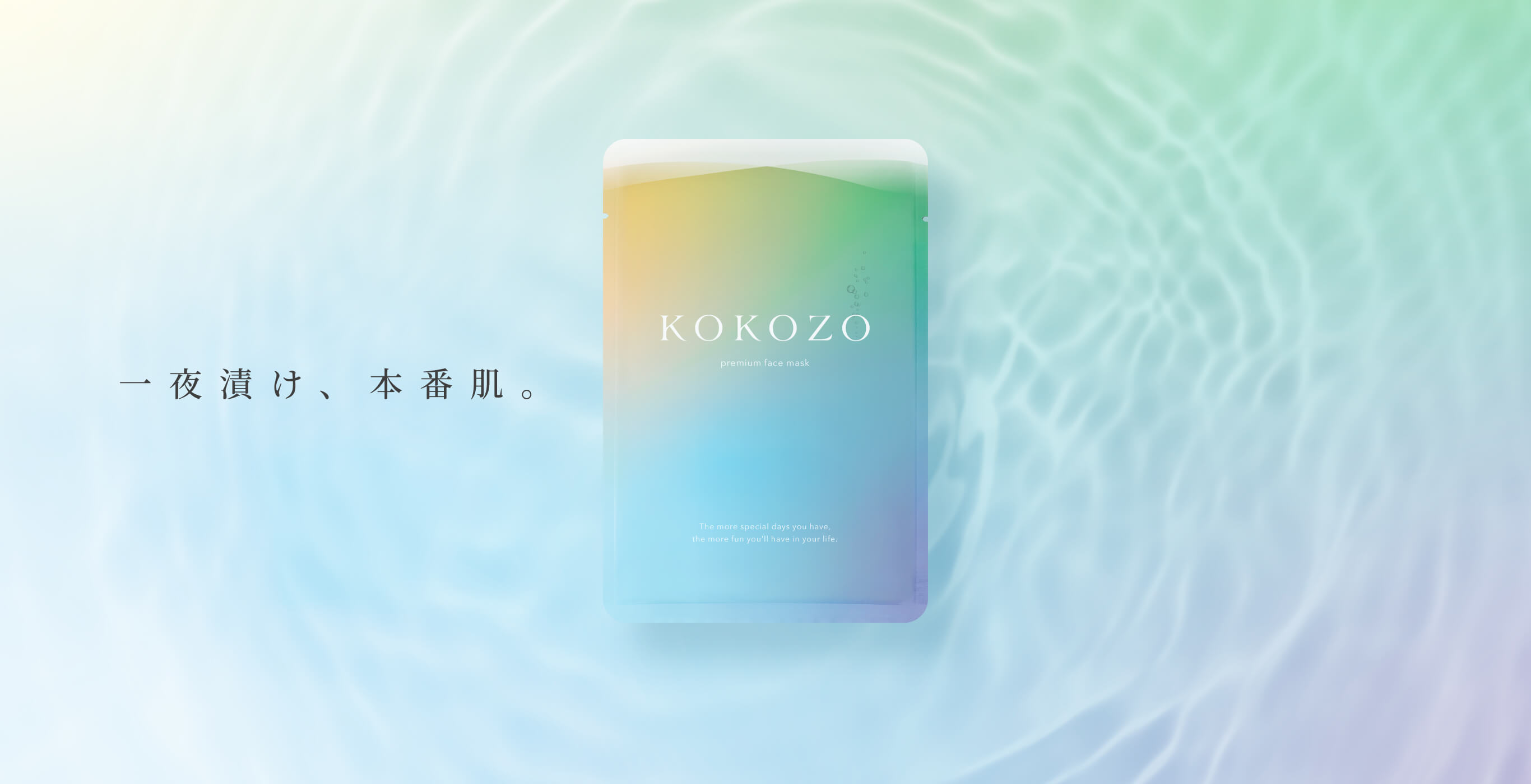 DONGURIはブランド「KOKOZO」と、そのファーストプロダクトであるフェイスマスクについて、ユーザー調査やコンセプト開発、販売戦略、パッケージデザイン、撮影やWebサイト開発、PRなど、ブランディングに関わる一連のプロセスを担当しました。