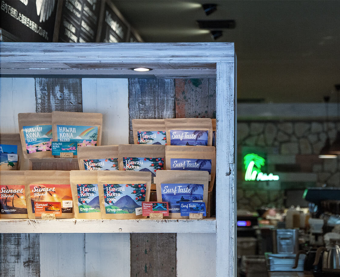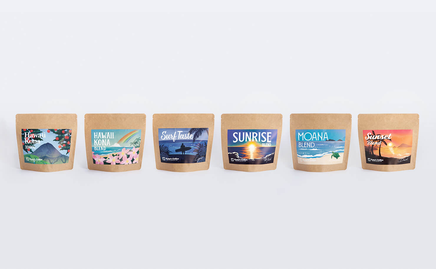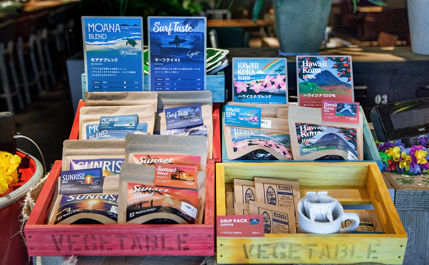トリドールホールディングスが展開する「コナズ珈琲」は、「ハワイにいるような空気感を体験できる」カフェとして、人気を誇るブランドです。 今回、DONGURIが依頼を受けたのは、店舗内のツールのリニューアル。特に、店内で販売されていた、珈琲豆のパッケージのリニューアルを行いました。 DONGURIは、今回のプロジェクトを、単なる店内ツールのデザインリニューアルではなく、「コナズ珈琲」の世界観を体現し、入店から退店までの「ハワイ体験」をトータルに楽しんでいただくための体験デザイン、と定義しました。 体験のデザインにあたっては、すでに「コナズ珈琲」が体現している「ハワイ体験」とは何か?について、正確な言語化を、リサーチャーとデザイナーで試みました。実際に来店しての店舗体験はもちろん、ブランド立ち上げ時のコンセプトを参照し、「コナズ珈琲が体現している価値」の言語化を行いました。 その結果、珈琲豆の体験コンセプトを「旅の終わりにワクワクしながらお土産を買う体験」として定義。 そのコンセプトを「コナズ珈琲」におけるハワイ体験と接合させ、「来店の思い出として思わず買いたくなるお土産とは何か?」を検討し、ハワイの印象的な風景をあしらったデザインを開発。「ハワイ体験」の楽しさを持ち帰ってもらうことで、さらなる再来店を促すツールとしても設計しています。