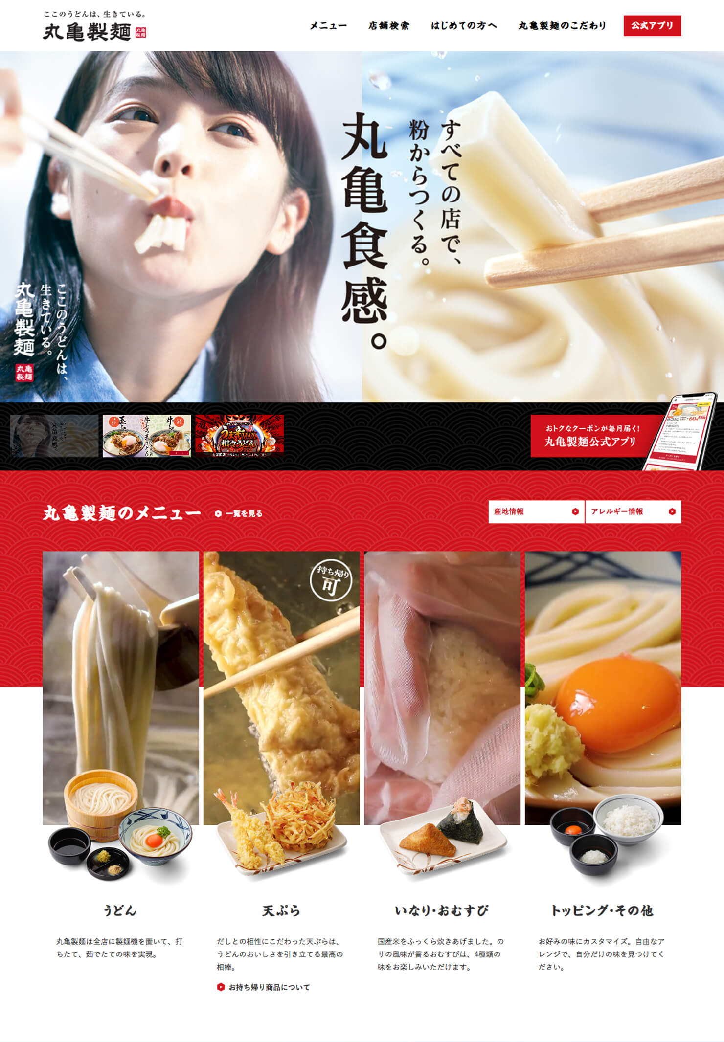 トリドールホールディングスが運営する丸亀製麺の公式サイトのリニューアルデザイン/コンテンツ設計を担当しました。 丸亀製麺は、セントラルキッチンを持たず、各店舗内でうどんを粉から打ち・提供前に茹でることで「常に新鮮なうどんを提供する」というオペレーション上の特長を持っています。その特長を伝え、来店/再来店につなげることをテーマとし、Webサイトの設計を行いました。 設計にあたっては、「どういうときにうどんが食べたくなるか」「うどんが美味しそうに見える瞬間はどこか」等の「うどん体験」の洗い出し、およびマーケティング戦略との接合を行い、最適なビジュアルやコンテンツ情報に落とし込みました。 また、ビジュアルにおいては、一点一点の商品において撮影ディレクションまで行うなど、細部に渡り「うどんのシズル感」を追求しています。
