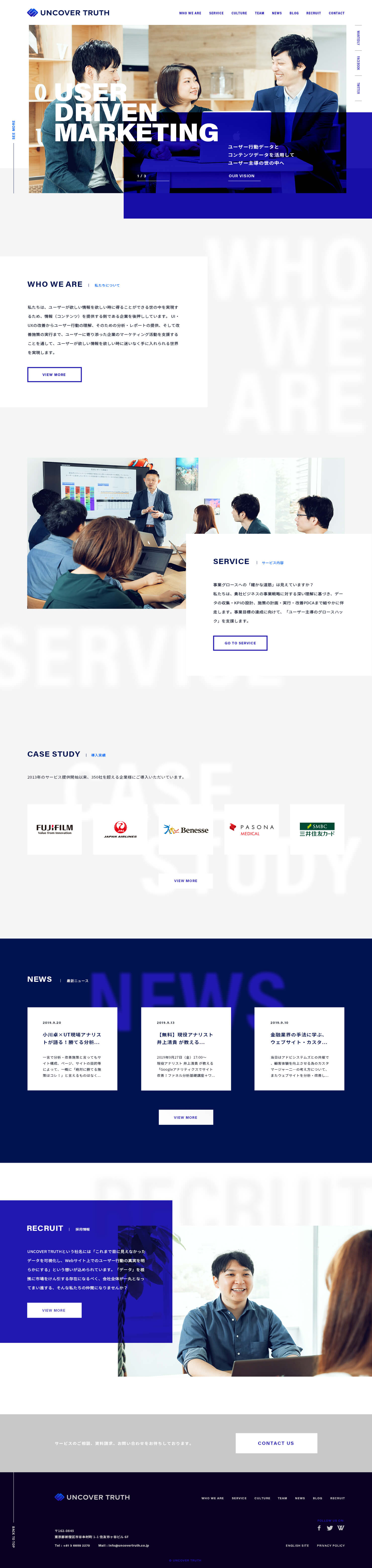 UNCOVER TRUTH 様の、CI(コーポレートアイデンティティ)構築、およびコーポレートWebサイトのリニューアル制作を行いました。